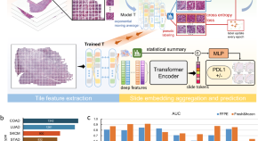 • PDL1 expression is a common biomarker for immunotherapy response in cancer, and it is usually quantified using immunohistochemistry. Here, the authors develop a weakly supervised learning approach combining multiple instance learning and a teacher-student framework to predict PDL1 expression from histopathological imaging.