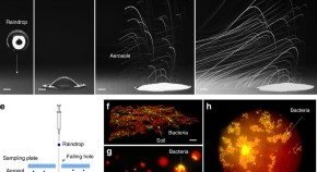 Bioaerosols may be generated when bubbles break on the surface of water, but it is unclear if this mechanism works with soil-based microbes. Here, the authors show that soil bacteria may be transferred from the soil surface and dispersed by raindrops.