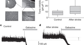 Following a stroke, there is generally limited functional recovery, but plasticity in adjacent intact areas may be critical to rehabilitation. These authors report that tonic GABAA inhibition is elevated in cortex immediately surrounding the stroke site. Furthermore, genetically or pharmacologically reducing tonic GABAA receptor signalling leads to improved functional and motor recovery in a mouse model of stroke, suggesting that this could be a new pharmacological target for stroke therapy.