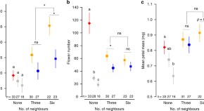 Plants can recognize nearby kin and alter their growth in response. Here, Torices et al. demonstrate that flower production can also be sensitive to social context, with plants producing larger floral displays in the presence of relatives, which may increase attraction of pollinators to the group.