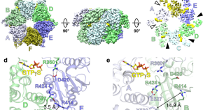 Dynein is a molecular motor involved in many cellular functions. The motor domain of dynein contains six AAA+ domains forming a ring that interacts with the motile linker domain. The structure of yeast dynein motor domain crystallized without nucleotides is now presented at 3.3-Å resolution and shows the specific contacts between linker and ring, with nucleotide interactions at the different AAA+ domains revealed by soaking experiments.