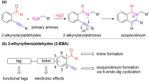 Selective functionalisation of the N-terminus of peptides and proteins may offer a useful tool for single-site modification. Here a general method for selective N-terminal labeling of peptides is reported, based on cyclisation of ethynylbenzaldehyde to form stable isoquinolinium salts.