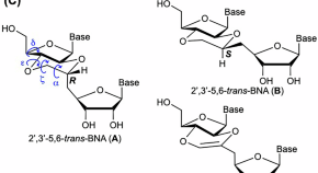 Artificial nucleic acids with a fixed conformation of the backbone of the oligonucleotide can form stable duplexes, however, the synthesis of modified nucleotides with non-canonical three-dimensional structures remains very challenging. Here, the authors design and synthesize dinucleotides containing 2′,3′-trans-bridged nucleic acids (2′,3′-trans-BNAs), showing a similar N-type sugar conformation in RNA-duplex but with different ζ and α torsion angles.