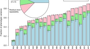 This study uses a large number of crosses between a common lab strain and vineyard-isolated strain of yeast, and estimates the phenotypic variance for various quantitative traits. Using this data set, the authors show additive quantitative trait loci (QTL) and QTL–QTL interactions to be on average 43% and 9%, respectively.