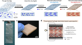 Specific mechanical properties are one of the most important issues for application of synthetic hydrogels as biological tissue, flexible electronics or in conductive membranes. Here, the authors demonstrate that a reconstruction process consisting of anisotropic densification of pre-gel and subsequent ionic crosslinking and rehydration leads to strong, stiff, and conductive alginate hydrogels with densely interconnecting networks.