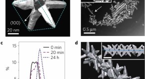 Monodisperse octapod-shaped inorganic nanocrystals suspended in suitable solvents are shown to self-assemble into chains of interlocked octapods, which in turn aggregate to form three-dimensional crystals. Such hierarchical self-assembly is supported by a simulation model of the octapods, which shows that the favourable interlocked configuration is encoded in the octapod’s shape.