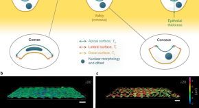 Experiments on cell monolayers on corrugated hydrogels reveal the effects of local curvature on the shape of cells and nuclei. A vertex model lends support to the idea that the modulation of tissue thickness may enable curvature sensing.