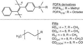 Multifunctional phase-change hybrid materials containing paraffin waxes (PWs) within a microporous conjugated polymer (CP) film were developed for new sensor and actuator applications. The hybrid films were prepared simply by depositing various PWs onto CP films to show critical changes in FL intensity and color during the phase change of PWs. This fascinating FL response behavior to external heat facilitated various applications such as reversible writing/erasing, fingerprinting and thermometer sensors. An appropriate layer-supported hybrid film showed extremely fast and highly reproducible thermomechanical actuation.