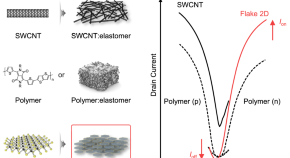 Intrinsically stretchable electronic devices are interesting for wearable electronics, soft robotics, and stretchable display applications. Here, the authors report the fabrication of intrinsically stretchable solution-processed thin-film transistors based on 2D MoS2 flakes, showing high performance and stability under strain up to 20%.