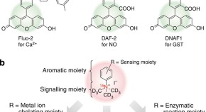 The enzyme serine hydroxymethyltransferase (SHMT) has been implicated in several diseases, however is hard to investigate. Here, the authors used a design strategy based on the retro-aldol-type reaction catalyzed by SHMT to develop SHMT-responsive fluorescence and 19F NMR molecular probes.