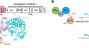 Modular polyketide synthases (PKSs) are multi-domain enzymes responsible for the biosynthesis of polyketide antibiotics. Here, authors show the potential of ancestral sequence reconstruction to facilitate structural analysis of modular PKSs.