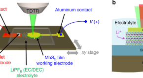Thermal transistors can enable game changing applications in energy harvesting and heat routing. Here, the authors demonstrate reversible thermal modulation of nearly 10 times by ion intercalation in MoS2 nanofilms. A new thermal microscopy technique allows operando imaging of Li ion segregation.