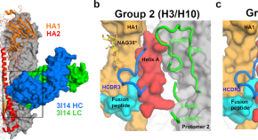 Previously, a broadly neutralizing antibody, 3I14, active against groups 1 and 2 influenza A viruses was isolated from human memory B cells and showed protection in mice from lethal viral challenge. Here, Harshbarger and Deming et al. provide the crystal structure of 3I14 Fab in complex with H3, H6, and H10.