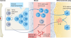 • Clonal haematopoiesis of indeterminate potential (CHIP) commonly occurs as a result of mutations in transcriptional regulators and is associated with a doubling of the risk of atherosclerotic cardiovascular disease. Jaiswal and Libby propose that CHIP contributes to the increased inflammation seen in ageing and thereby explains some of the age-related risk of cardiovascular disease.
