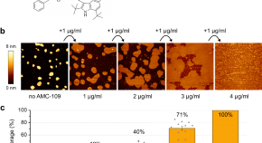 The mechanism of action of the antibacterial tripeptide AMC-109 is unclear. Here, Melcrová et al. show that AMC-109 self-assembles into stable aggregates with a cationic surface, and then individual peptides insert into the bacterial membrane and disrupt membrane nanodomains, thus affecting membrane function without forming pores.