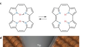 • Force-induced tautomerization in a single porphycene molecule is investigated on a Cu(110) surface at 5 K by using non-contact atomic force microscopy. The force needed to trigger the tautomerization process is quantified by force spectroscopy and theoretical calculations reveal the atomistic mechanism behind the reaction.