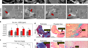Restoration of coronary blood flow after a heart attack may lead to reperfusion injury and pathologic iron deposition. Here, the authors perform magnetic susceptibility imaging showing its association with iron in a large animal model of myocardial infarction during wound healing, and showing feasibility in acute myocardial infarction patients undergoing percutaneous coronary intervention.