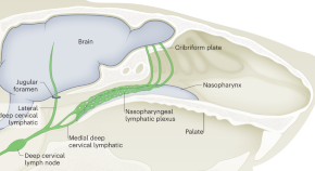 Cerebrospinal fluid is now thought to drain through lymphatics instead of veins, but the routes the fluid takes from the subarachnoid space to cervical lymph nodes are unclear. Using advanced imaging, a recent study provides unprecedented anatomical details of lymphatic vessels draining cerebrospinal fluid along the nasopharynx.