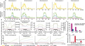 Nucleosomes are composed of around 147 bases of DNA wrapped around an octamer of histone proteins. Here, a genome-wide analysis of nucleosome positioning in Arabidopsis thaliana has been combined with profiles of DNA methylation at single base resolution, revealing 10-base periodicities in the DNA methylation status of nucleosome-bound DNA. The results indicate that nucleosome positioning influences the pattern of DNA methylation throughout the genome.