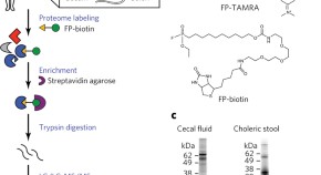 Four secreted bacterial serine hydrolases found by an ABPP approach in Vibrio cholerae–infected rabbits, and one in human infection, regulate the levels of intelectin, an intestinal lectin that binds V. cholerae during infection and may facilitate bacterial surveillance in the intestine.