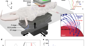 Causes of heart failure can be investigated by tracing imperfections in electrical current propagation on the millimetre scale; however, the spatial resolution of current magnetocardiograph methods are limited to the centimetre-scale. Here, the authors report a millimetre-scale nitrogen vacancy-based quantum sensing to measure the magnetic field generated by the heart of a living rat, from which the cardiac electrical currents can be extrapolated.