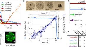 Particle-attached bacteria play a key ecosystem role by degrading complex organic materials in the ocean. Here, the authors use model marine microbial communities to show that community composition and interspecies interactions can significantly slowdown the rates of particle turnover in the environment.