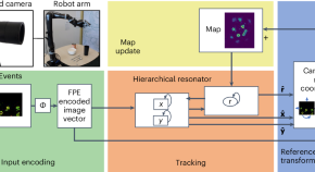 Visual odometry, or self-motion estimation, is a fundamental task in robotics. Renner, Supic and colleagues introduce a neuromorphic algorithm for visual odometry that leverages hyperdimensional computing and hierarchical resonators. The approach estimates a robot’s motion from event-based vision, a step towards low-power machine vision for robotics.