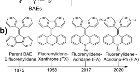 A Z type sexiphenyltetracarboxylic dianhydride, 3,3′′′′′,4,4′′′′′-1,1′:2′,1′′:4′′,1′′′:4′′′,1′′′′:2′′′′,1′′′′′-sexiphenyltetracarboxylic dianhydride (1), was synthesized in seven steps from diethyl 4-bromophthalate. Aromatic polyimides (PI1x) were synthesized from 1 and various aromatic diamines (x) by both a conventional two-step procedure and a one-step procedure, and the properties were compared with those of the polyimides (PI2x) previously prepared from rigid 3,3′′′′′, 4,4′′′′′-p-sexiphenyltetracarboxylic dianhydride (2), the isomer of 1. The values of glass transition (Tg) temperatures are much higher (270–345 °C) than those of the corresponding PI2x, and the decrease in the storage modulus at Tg is larger than that of the corresponding PI2x.