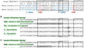 Noguchi et al. use CRISPR–Cas9 to generate mice with mutations in the promoter regions of the insulin I and II genes and show that only homozygous mutations in the highly conserved C1 element triggered a diabetic phenotype, highlighting the importance of this loci in insulin transcription.