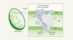 • Structures of the machinery for importing proteins into chloroplast organelles of algae, determined using cryo-electron microscopy, have opened a new chapter in efforts to understand how chloroplasts are built.