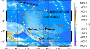 The lithosphere beneath the Ontong Java Plateau is thickened by up to 40 km relative to the surrounding ocean floor which suggests it formed through the ascent of a mantle plume, according to analyses of seafloor seismic observations.