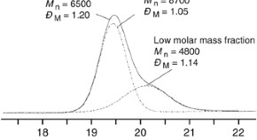 Dilithium diamides of Me3Si- and i-Pr3Si-protection were examined as difunctional initiators for polymerization of methyl methacrylate (MMA) in toluene in combination with tributylaluminum. The less sterically demanding Me3Si-derivative underwent 1,2-addition (carbonyl addition) in the initial stage of polymerization to form type B poly(MMA) (PMMA) as a minor component (26%). The i-Pr3Si-derivative gave type A PMMA exclusively with the 1,3-xylylenediamine unit in the middle of the chain. H2/Pd-C-mediated cleavage of the diamine unit yielded PMMA with a half molar mass and narrow molar-mass distribution.