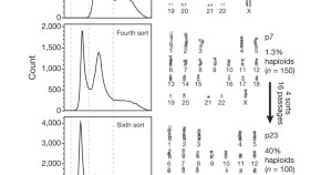 Haploid human embryonic stem cells have been derived from haploid oocytes, the cells maintain a normal haploid karyotype as pluripotent cells and, unexpectedly, as differentiated cells — loss-of-function genetic screens previously performed with haploid embryonic stem cells in mice can now be performed in humans.