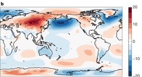 The presently accepted explanation for why the northeastern reaches of Asia and North America are far colder than western areas at similar latitudes relies on orographic controls of weather systems and the movement of prevailing atmospheric circulation over warm ocean currents. Here it is shown that oceans are indeed an important underlying cause, but via a different mechanism: the generation of strong atmospheric waves leading to anomalous cold over eastern continental boundaries.