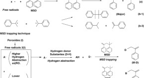 Reactive extrusion of poly(L-latctide) (PLLA) was carried out in the presence of a small amount of various peroxides. The resulting crosslinked, four-armed randomly branched PLLA (χ-PLLA) was characterized by size exclusion chromatography fitted with multiangle laser light scattering and rationalized with the type of peroxide used. The extent of branching of χ-PLLA was estimated by the shrinking factor and was rationalized with the effective radical number per PLLA precursor n. The nucleation and overall crystallization rate of χ-PLLA in the nonisothermal crystallization from the melt was rationalized with branching and entanglement density.