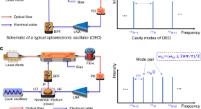 Optoelectronic oscillators (OEOs) are used to generate low-noise microwave oscillations for many technologies but typically operate in a limited frequency range. Here the authors present an OEO that takes advantage of random distributed feedback and an open cavity structure to produce ultra-wideband random microwave signals.