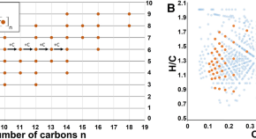 Various fatty acids and aldehydes can be synthesized from acetylene and carbon monoxide by nickel sulfide catalysts under volcanic hydrothermal conditions compatible with aqueous early earth conditions, however, their chemical complexity remains underexplored. Here, the authors use 13C-labelling together with untargeted ultrahigh-resolution mass spectrometry to categorize carboxylic acid functional groups, revealing C2-addition driven compound diversity as well as new sulfur containing classes.