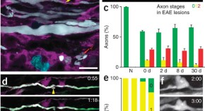 It remains unclear how myelin is targeted specifically to axons while sparing neuronal cell bodies and dendrites, or how small gaps, the nodes of Ranvier, are left unmyelinated along the axon. In this study, authors used genetic analyses in zebrafish and mice to demonstrate that molecules of the paranodal axo-glial junction act jointly with molecules of the internodal domain to regulate axonal interactions and myelin wrapping, and that in the combined absence of these molecules myelin sheaths are misplaced.