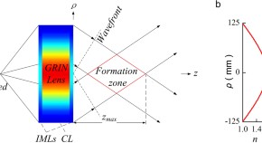 Lenses with superior performance with respect to conventional uniform materials are desirable. The authors show a three-dimensional lens, made of multilayered metamaterials and based on approximate transformation optics, which works in different polarizations at broad viewing angles and with wide bandwidth.
