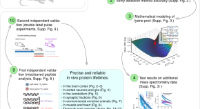 The authors present a new protocol to quantitatively assess protein turnover in mice in vivo. The procedure includes instructions on the mouse diet for stable isotope labeling of amino acids in mammals (SILAM), sample preparation, mass spectrometry analysis and data processing.