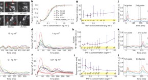 Multicellular organisms, particularly their immune systems, rely on complex cell-to-cell communication, mediated by signalling molecules that form spatiotemporal concentration gradients. Here, high-throughput microfluidic cell culture and fluorescence microscopy, together with quantitative gene expression analysis and mathematical modelling, have been used to investigate how mammalian cells respond to different levels of TNF-α and signal to NF-κB. Both digital and analogue responses are revealed.