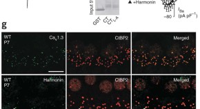 Harmonin was previously identified as a scaffolding protein that is important for the localization of cadherin in the upper tip-link density of the stereociliary membrane and for the initial mechanotransduction event in inner hair cells. Here the authors find that harmonin is involved in regulating the voltage-gated calcium channel for synaptic transmission in inner hair cell ribbon synapses.