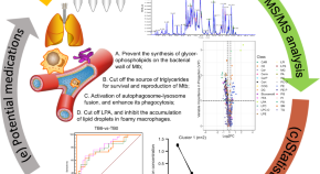 Lipidomics profiling workflow. (a) Plasma lipidomics extraction was accomplished by fractionating samples into pools of species with similar physicochemical properties using appropriate combinations of organic solvents, after the addition of an internal standard. (b) UPLC-MS/MS-based platforms were used to perform optimal profiling of plasma lipidomics. Data preprocessing generated a list of chromatographic peak areas for the lipidomics detected in each sample injection. Inter- and intra-batch normalization was carried out with quality control (QC) calibration and internal standard correction. (c) Once normalized, univariate and multivariate data analyses were performed. (d) Selection of the best candidate biomarkers for the early diagnosis and efficacy evaluation of TB. (e) The results of this experiment provide four ideas for the research and development of potential antituberculotic medications, so as to achieve the purpose of antituberculosis treatment.