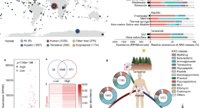 Antibiotic resistance genes (ARGs) have accelerated microbial threats to human health. Here, Zhang et al. analyze 4572 metagenomic samples to illustrate the global patterns of ARG distribution in diverse habitats. They quantitatively evaluate the health risk to humans of 2561 ARGs by integrating human accessibility, mobility, pathogenicity and clinical availability. With the machine learning, they map the antibiotic resistance threats in global marine habitats.