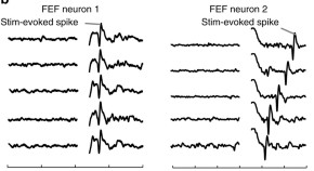 • Frontal eye field (FEF) is a visual prefrontal area involved in top-down attention. Here the authors report that FEF neurons projecting to V4/MT are persistently active during spatial working memory, and V4/MT neurons show changes in receptive field and gain at the location held in working memory.