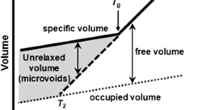 129Xe NMR spectra of 129Xe in polyphenyleneoxide, PPO were measured at various temperatures below Tg. From the analysis of 129Xe NMR chemical shifts, the mean volume of individual microvoids in PPO, v could be determined. The temperature when value of v becomes same as a Xe atom, was very close to Tg of PPO. Temperature dependence of individual microvoid’s volume was very similar with that of CH′, which is obtained by dual-mode sorption model from Xe sorption isotherms and is corresponding to the unrelaxed volume of PPO in the glassy state.