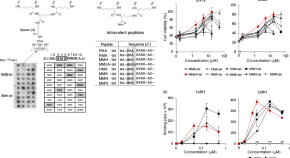 Watanabe-Takahashi, Tamada, Senda et al. identify a tetravalent peptide that inhibits Shiga toxin (Stx), a major virulence factor of enterohemorrhagic Escherichia coli, by targeting its receptor-binding. On the other hand, a monomeric peptide containing the same motif occupies the Stx catalytic cavity, suggesting that this peptide motif can inhibit two subunits of Stx.