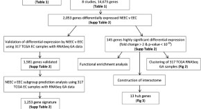 Endometrial cancer is the most common invasive gynaecological cancer in developed countries. Here a meta-analysis identifies an additional nine novel endometrial cancer risk loci and eQTL analysis reveals risk variants associate with reduced expression of negative regulators of oncogenic signal transduction proteins.