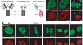 GFP fluorescence can be modulated in mammalian cells by binding to single-chain antibodies (nanobodies), selected to make GFP brighter or dimmer; these changes are explained by the crystal structures of the GFP-nanobody complexes. The applications of such nanobodies to monitor protein expression and subcellular localization in real time are explored.