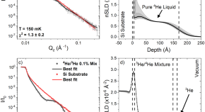 Superfluidity, a liquid exhibiting frictionless flow, is so far limited to observations in low-temperature 3He and 4He, where the underlying mechanisms governing the quantum state are complex and different for each isotope, making for a fascinating but challenging phenomenon to study experimentally. The authors use isotope-sensitive neutron reflectometry to investigate mixed 3He/4He superfluid He films on a Si surface, and resolve the structural features and phase transitions that occur with changing temperature.